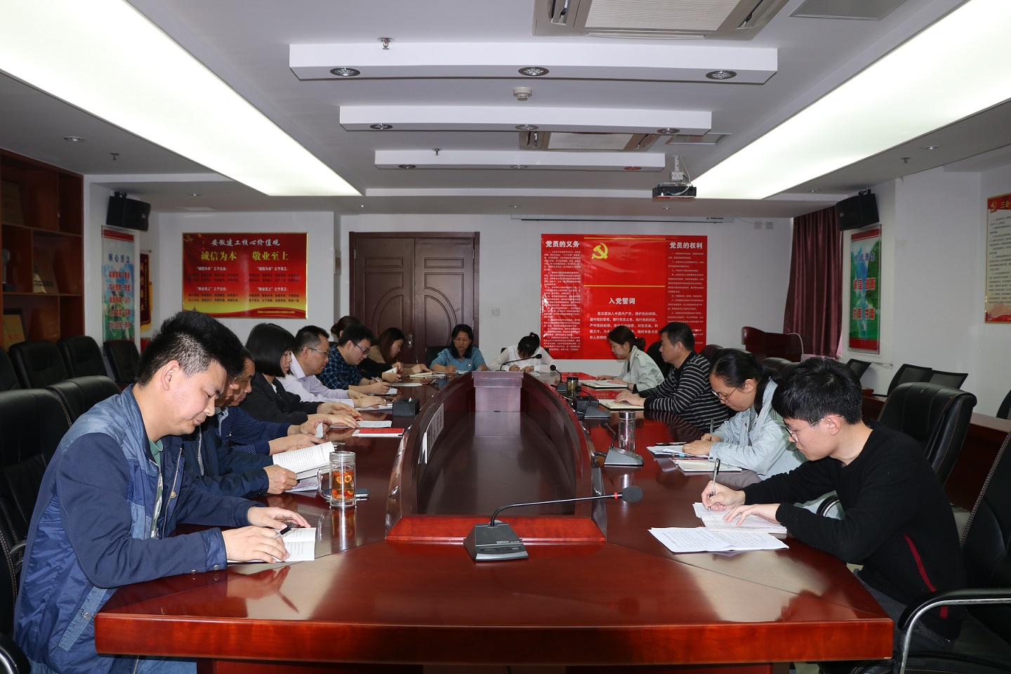 根據(jù)公司黨委有關(guān)部署,為認(rèn)真學(xué)習(xí)貫徹黨的十九大精神,落實(shí)習(xí)近平總書(shū)記關(guān)于糾正“四風(fēng)”不能止步、作風(fēng)建設(shè)永遠(yuǎn)在路上的重要指示精神,4月28上午,機(jī)關(guān)第二黨支部在公司十六樓會(huì)議室召開(kāi)2017年度專題組織生活會(huì)。會(huì)議由支部副書(shū)記黃俊筠主持。