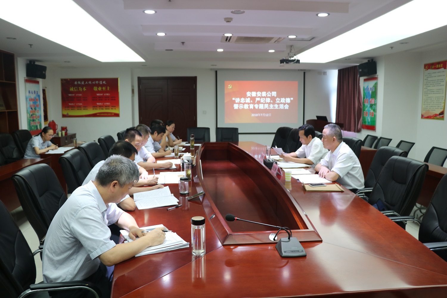安徽安裝公司召開“講忠誠、嚴紀律、立政德”警示教育專題民主生活會