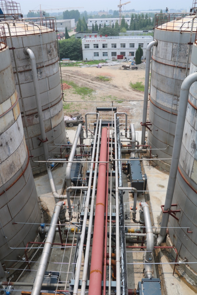 2018年10月,蚌埠分公司中標(biāo)宿州中糧無水乙醇搬遷技改項目。該項目為發(fā)酵工序區(qū)域以及酒精罐區(qū)、混配站裝置區(qū)域裝置利舊設(shè)備拆遷(保護(hù)性拆除)轉(zhuǎn)運(含各類罐22臺、離心機組3套)非標(biāo)設(shè)備制作安裝,設(shè)備總重量約1055噸,工藝管道約4500米及電氣儀表專業(yè)施工。工程總造價1584萬元。