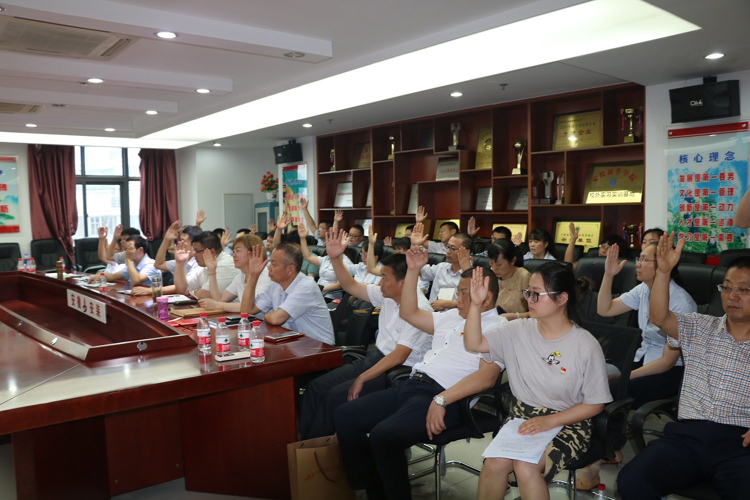 與會全體職工代表以舉手表決的方式審議通過了《安徽安裝公司年金實施方案》和《決議》。