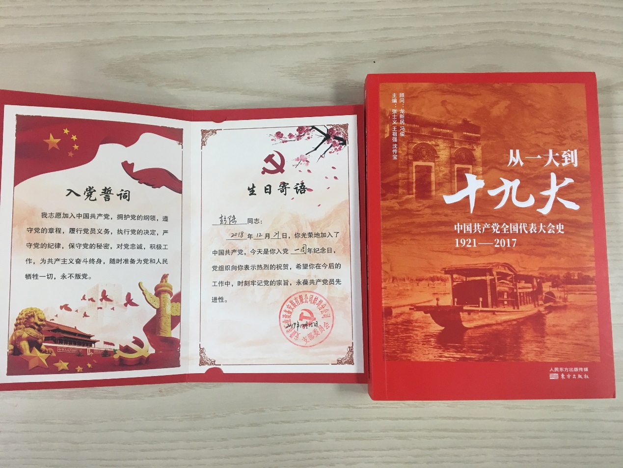 會上,黨支部書記程茂麗首先宣讀了12月份過政治生日的黨員名單,接著分別向他們贈送“政治生日”賀卡和《從一大到十九大》書籍禮物。隨后,黨員彭陸同志結合自己入黨一年來的歷程發表了生日感言,與大家分享加入黨組織以來成長歷程的點點滴滴,并結合本職工作,展望未來工作,牢記使命擔當。