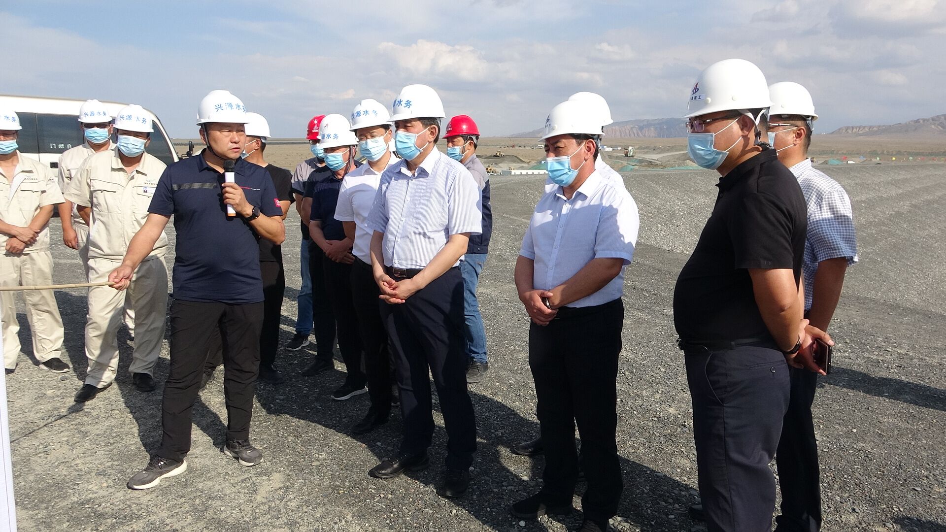 2020年7月5日下午,塔城地委副書記、行署專員木合亞提·加爾木哈買提赴安徽安裝公司新疆烏蘇市供水改擴建調節蓄水池工程調研指導工作,烏蘇市委副書記、市長阿達力別克·巴合提汗,市委常委、副市長賈成海,副市長牛義強、李鴻等參加。