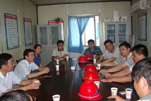 張書記一行代表集團(tuán)公司向堅(jiān)守崗位的職工表示親切慰問(wèn),并認(rèn)真聽取了項(xiàng)目部經(jīng)理郭左明有關(guān)工程概況、項(xiàng)目安全生產(chǎn)與保護(hù)、開展“雙爭(zhēng)”勞動(dòng)競(jìng)賽、“黨員先鋒號(hào)”活動(dòng)和創(chuàng)文明示范工地等工作匯報(bào)。張書記強(qiáng)調(diào):項(xiàng)目部要密切關(guān)注高溫期間職工的生產(chǎn)、生活情況,要特別重視安全生產(chǎn),扎實(shí)地做好各項(xiàng)基礎(chǔ)工作,保質(zhì)保量完成工作任務(wù),樹立安徽省安的品牌形象。王總代表公司向集團(tuán)領(lǐng)導(dǎo)冒著酷暑親臨一線慰問(wèn)表示衷心的感謝,并表示:全體省安人將繼續(xù)發(fā)揚(yáng)“特別能吃苦、特別能戰(zhàn)斗”的精神,戰(zhàn)勝酷暑,奮力攻堅(jiān),保證各項(xiàng)任務(wù)順利完成。
