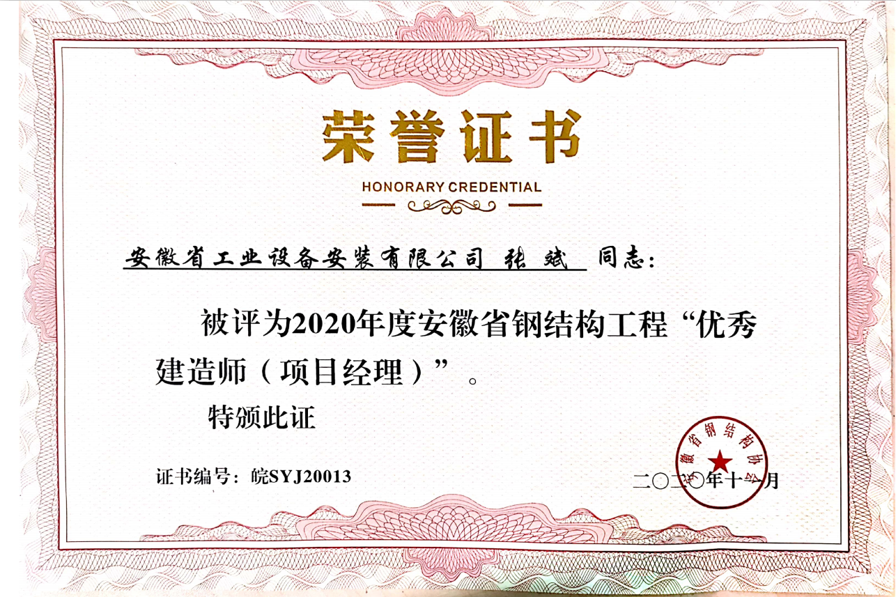 近日,以“聚焦十四五,展望鋼結構”為主題的安徽省鋼結構協會三屆二次會員代表大會暨學術交流會公布了“皖鋼杯”獲獎名單,安徽安裝公司承建的淮河試驗研究中心(水工河工模型試驗廳)一期工程榮獲“皖鋼杯”優質工程獎,公司黨委書記、董事長胡六中榮獲安徽省鋼結構行業優秀企業家,蚌埠分公司副經理、淮河試驗研究中心一期工程項目經理張斌被評為優秀項目經理。這也是我公司首次榮獲鋼結構工程類獎項。