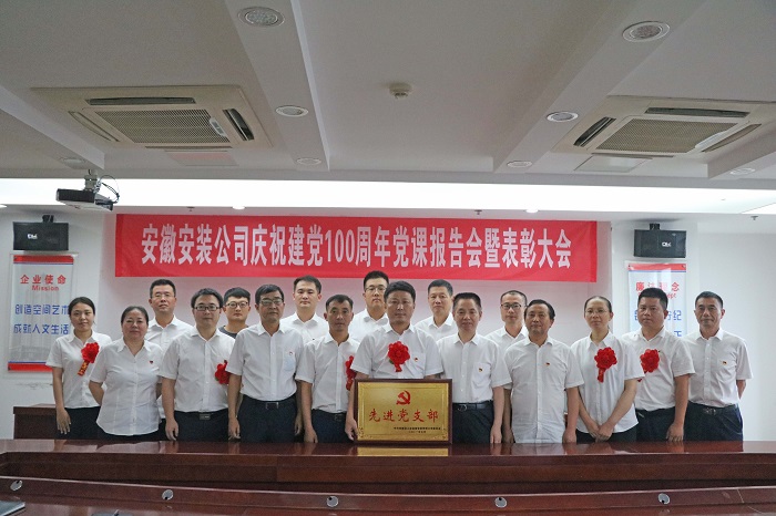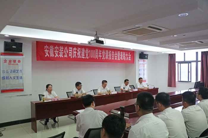 為慶祝中國共產黨成立100周年,激勵廣大黨員干部堅定理想信念,進一步提高黨員隊伍的凝聚力、戰斗力、創造力,7月5日,安徽安裝公司召開慶祝建黨100周年黨課報告會暨表彰大會。公司領導班子成員出席會議,會議由紀委書記、工會主席李寬旭主持。