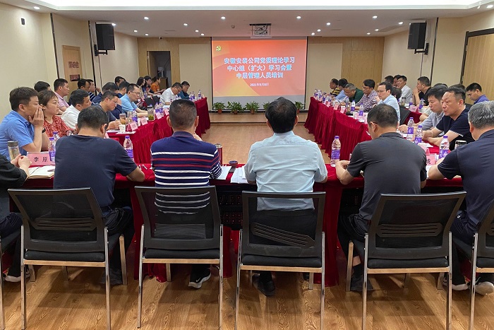 5月8日,公司黨委在阜陽潁東中醫院建設PPP項目舉辦安徽安裝公司黨委理論學習中心組(擴大)學習會暨中層管理人員培訓黨史學習教育專題黨課報告會。公司黨委書記、董事長胡六中作了題為《學黨史牢記初心 辦實事踐行使命》的黨課報告,公司中層管理人員及機關全體員工等共90余人參加;
