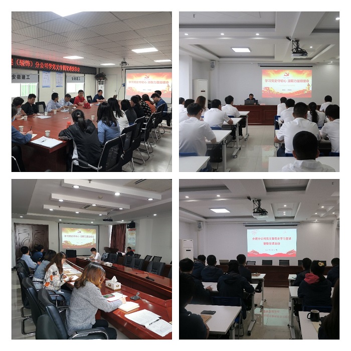 做好動員宣傳,切實營造良好氛圍。3月25日下午,公司黨委召開黨史學習教育動員大會,及時制定并下發《安徽安裝公司黨委關于開展黨史學習教育的工作方案》,成立安徽安裝公司黨委黨史學習教育領導小組,黨委主要負責同志任組長,黨委領導班子成員任組員,所屬各黨支部切實扛起主體責任,黨支部書記落實第一責任,確保強化組織領導,明確責任分工;5月13日上午,召開黨史學習教育推進部署會;5月18日下午,召開學黨史、抓整改、正作風暨“違規決策、違規投資、違規擔保、違規招投標”專項整治動員部署會議,確保公司學黨史、抓整改、正作風取得實效。