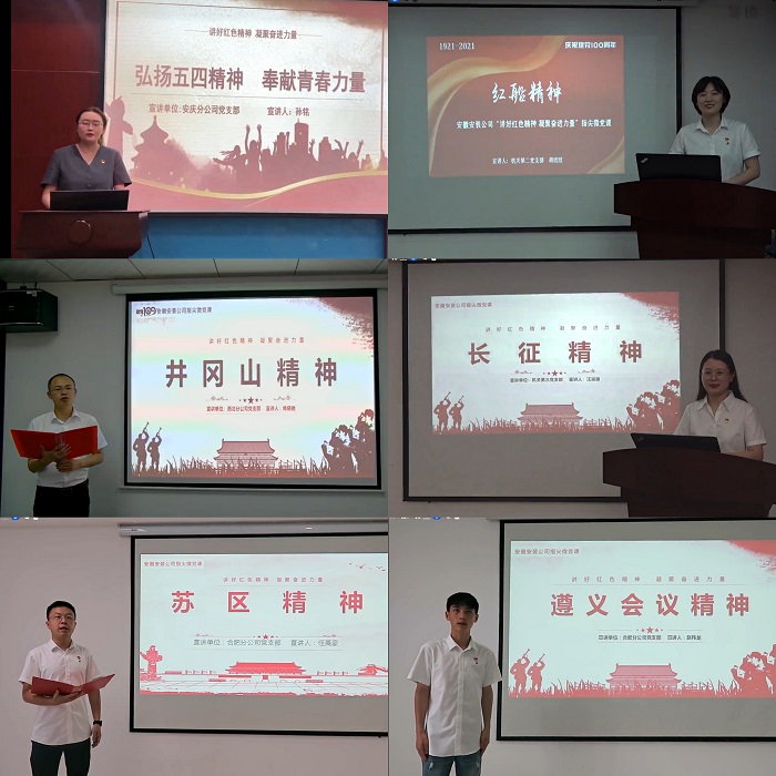 指尖微黨課課堂。為慶祝建黨100周年,促進黨史學習教育方式多樣化,讓廣大基層一線黨員尤其是青年黨員同志廣泛參與到黨史宣講中來,公司黨委依托公司官方微信公眾號重新打造安徽安裝的黨課品牌——“指尖微黨課”課堂,組織開展了“講好紅色精神 凝聚奮進力量”指尖微黨課活動。所屬各黨支部積極推薦黨員同志,尤其是基層一線的黨員同志參與到公司黨委“指尖微黨課宣講員”隊伍中來,此次指尖微黨課課堂每集時長5-8分鐘,短小簡潔且內涵豐富,以五四精神、紅船精神、井岡山精神、延安精神、航天精神、偉大抗疫精神等人民熔鑄鍛造的偉大紅色精神為主題,講述這些紅色精神背后的感人故事,圍繞每一期紅色精神主題,主講人結合自身工作實際,談感想談體會。指尖微黨課旨在變“被動學”為“主動講”,變“集中念開會讀”為“隨時看隨地學”,解決了公司項目點多面廣,黨員分散不易集中系統學習的問題,現在只要打開手機,利用零碎時間就可以通過身邊人的宣講更直觀更生動地領略黨史中的奮進力量,切實做到“人人都是宣講員、黨課揣進口袋中”。