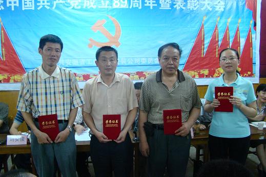 為紀(jì)念中國共產(chǎn)黨成立89周年,公司黨委于6月29日下午召開了“紀(jì)念中國共產(chǎn)黨成立89周年暨‘創(chuàng)先爭優(yōu)’表彰大會”。公司在崗黨員、非黨員中層干部、入黨積極分子以及受表彰的先進(jìn)集體、先進(jìn)個人參加了大會。大會由總經(jīng)理王軍邦同志主持。