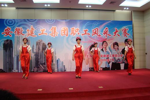 公司工會自5月初接到集團公司工會通知后,積極動員廣大職工踴躍參加。在公司黨政領導和各處室負責人的大力支持下,組織了有11人參加的表演隊。他們克服工作與家庭的困難,利用午休及業余時間認真排練。在比賽中,公司代表隊以工裝、民族服裝和禮服的一組精彩表演,展示了省安職工的風采。