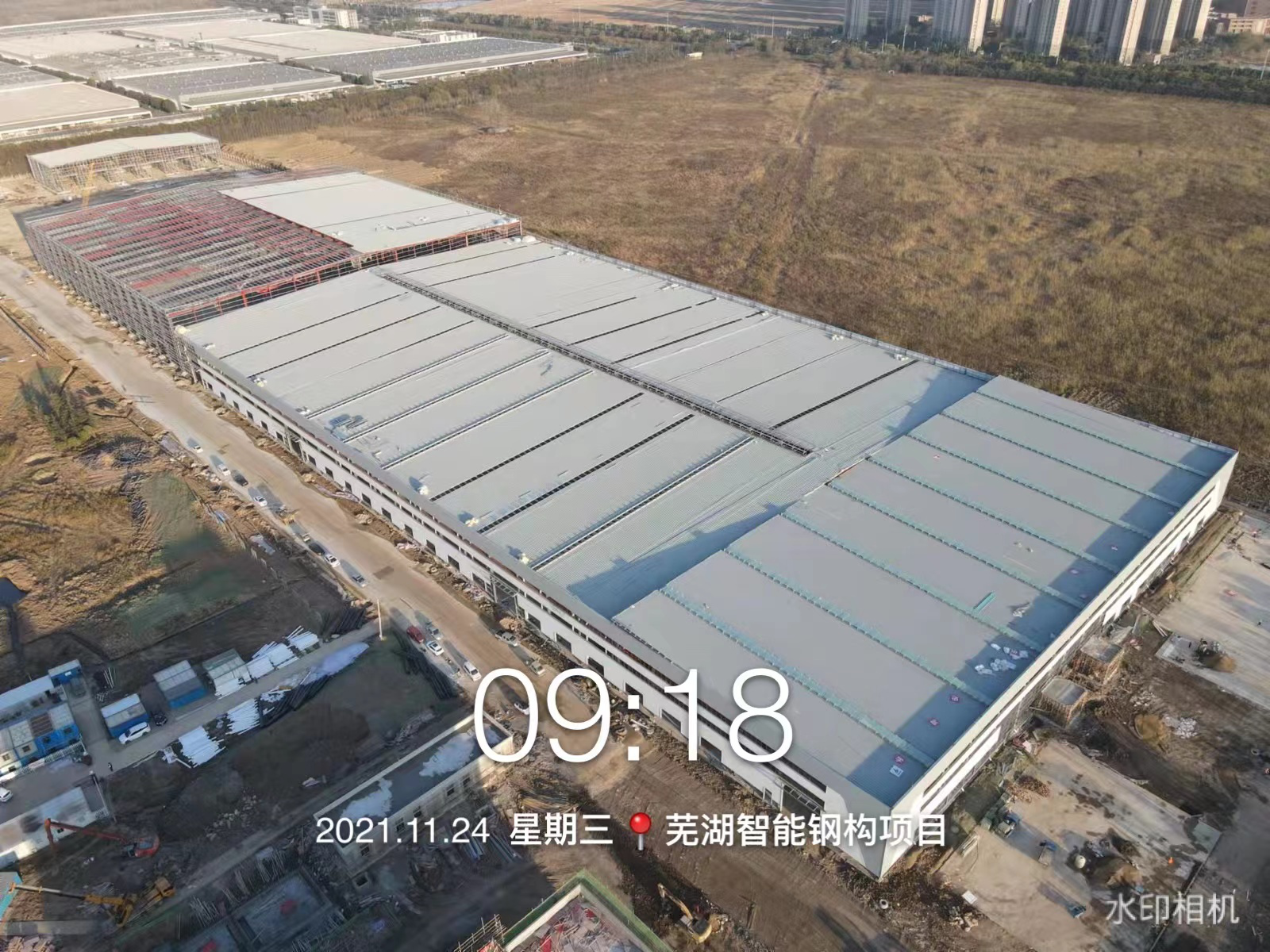 11月24日上午9點20分,隨著1#廠房54000平米車間最后一根屋面水平支撐安裝完成,標志著安徽建工鋼構智能制造有限公司廠房鋼結構項目主次構施工各節點目標任務順利完成,至此該項目“大干40天,完成主次構施工任務”勞動競賽提前6天,圓滿收官。