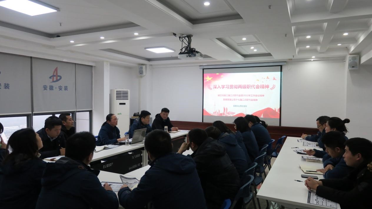 通過對兩級職代會精神的宣貫,使大家對集團(tuán)和公司2021年取得的可喜成績有了深刻的了解,也進(jìn)一步明確了2022年各項(xiàng)工作的思路、奮斗目標(biāo)和工作重點(diǎn)。在學(xué)習(xí)中,公司總經(jīng)理助理、合肥分公司黨支部書記、經(jīng)理趙永峰還結(jié)合分公司實(shí)際進(jìn)一步解讀了分公司2022年各項(xiàng)工作任務(wù)和目標(biāo),圍繞著公司職代會提出的“以項(xiàng)目管理年為抓手,堅(jiān)持穩(wěn)中求進(jìn),深化改革創(chuàng)新,加快轉(zhuǎn)型升級,著力提質(zhì)增效”等重點(diǎn)工作談了自己的切身體會。