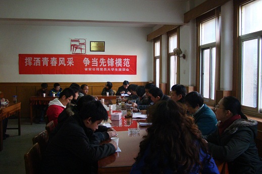 最后,戴書記聯(lián)系實(shí)際,就公司年輕大學(xué)生隊(duì)伍如何快速發(fā)展和發(fā)揮先鋒模范作用提出三點(diǎn)意見:一是年輕同志要著重從學(xué)習(xí)提高,實(shí)踐磨煉,作風(fēng)養(yǎng)成三個(gè)方面把握自身成長(zhǎng)規(guī)律,不斷提升自己。二是結(jié)合科學(xué)發(fā)展觀,堅(jiān)持以人為本,尤其是對(duì)有沖勁、有干勁的在職大學(xué)生多關(guān)懷,積極構(gòu)筑公司“人本管理”模式,把建設(shè)一支高素質(zhì)人才隊(duì)伍、黨員隊(duì)伍貫穿創(chuàng)先爭(zhēng)優(yōu)活動(dòng)的始終。三是對(duì)在職大學(xué)生如何健康成長(zhǎng)、快樂成才提出殷切希望:一要保持積極的心態(tài),要善于穩(wěn)定情緒,合理的進(jìn)行自我減壓,主動(dòng)與人有效溝通;二要保持務(wù)實(shí)的工作作風(fēng),踏實(shí)努力,加強(qiáng)執(zhí)行力的鍛煉;三要保持良好的形象,由內(nèi)而外的提升自己的素養(yǎng)。在新的一年里,希望大學(xué)生黨員在各自的崗位上率先垂范,彰顯風(fēng)采,把“揮灑青春風(fēng)采,爭(zhēng)當(dāng)先鋒模范”精神延伸到項(xiàng)目文化、企業(yè)文化和機(jī)關(guān)效能建設(shè)中去,為公司三個(gè)文明建設(shè)的進(jìn)一步加強(qiáng)和未來(lái)三年大發(fā)展夯實(shí)思想、隊(duì)伍、管理基礎(chǔ),為公司的“十二五”發(fā)展貢獻(xiàn)力量。