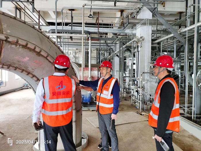 在隨后的調研會上,項目負責人對項目工程概況、施工進度、剩余工程量及下一步施工計劃和節點等基本情況進行了具體匯報,胡六中對項目部取得的階段性成果表示充分肯定。他強調,此項目是典型的工業安裝項目,項目專業性強、施工難度大,充分彰顯了安徽安裝在行業領域的高水平,體現了安徽安裝的核心競爭力,該項目的工作經驗值得學習、借鑒和推廣使用。針對下一步工作,胡六中提出四點:一是要嚴格管理,精心施工,科學安排好項目進度,在保證安全、質量的前提下加快完成建設任務,爭取早日投產達效;二是要抓好項目成本管控,夯實成本,最大程度做到降本增效;三是要加快推進項目后續決算工作,加強工程款回收力度,確保資金盡快回籠;四是要進一步做好市場維護與開拓,以優質精品工程,樹立安徽安裝的品牌形象,形成良好的經濟效益和社會效應,為蕪湖地區發展貢獻安徽安裝力量。