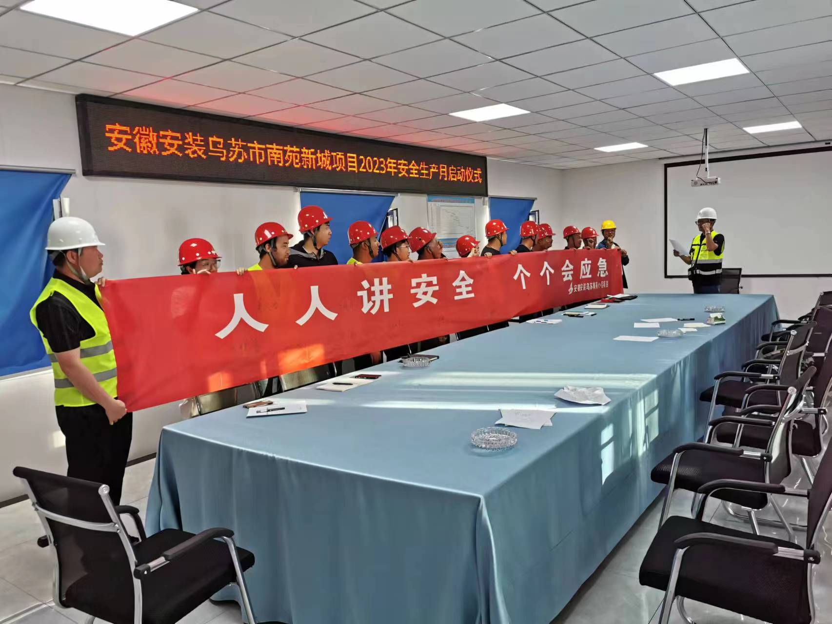 6月1日,建工安裝新疆烏蘇分公司在烏蘇市南苑新城小區住宅樓建設項目舉行安全生產月活動啟動儀式,分公司全體員工及項目部各班組管理人員參與此次啟動儀式。