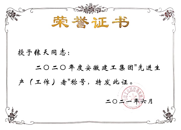2017年5月,張?zhí)焱靖鶕?jù)工作需要遠(yuǎn)赴新疆烏蘇項目上,在不到兩年的時間內(nèi),嚴(yán)謹(jǐn)求實,勤奮刻苦,兢兢業(yè)業(yè),時時處處嚴(yán)格要求自己,始終以飽滿的工作熱情、扎實的工作作風(fēng)、優(yōu)異的工作成績,贏得了廣大員工的普遍好評,榮獲2020年“建工集團(tuán)年度先進(jìn)生產(chǎn)(工作)者”稱號。